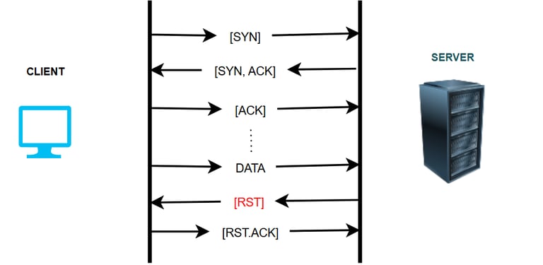 Example: A client thinks the connection is still open and sends data to the server. However, the server has already closed its end of the connection. The server will respond with an RST to indicate that the connection no longer exists.